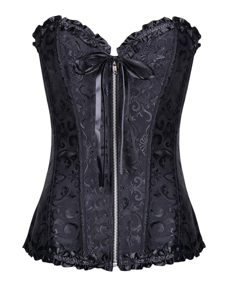 Gothic Brocade Corset Black With Zipper Front